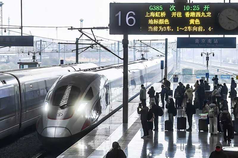 1月27日10时22分,G385次高铁列车抵达南京南站16号站台。手持终点站为“香港西九龙”车票的陆先生在站台留影,感慨道:“以往赴港需乘坐飞机或转车,如今可乘高铁一路向南,直抵维港之畔。”