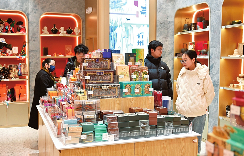 1月21日,省城钟楼街“晋礼城市会客厅”文创店,游客正在挑选商品。该店拥有2000多种颇具山西地方特色的文创产品,为市民和游客带来全新的文化消费体验,也为文创经济带来新活力。(王若渊摄)