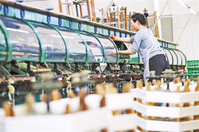 2月3日,黔江高新区一丝绸公司生产车间,工人在复摇生丝。