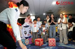 游客参与“迎财接福·福满新春”活动,感受海上新春年味。人民网记者 符武平摄 人民网海口2月22日电 (记者孟凡盛、符武平)2月21日正月初五,“破五”迎福热闹非凡,海峡股份琼桂航线长乐公主轮、万荣海轮、棋子湾轮船舶员工化身“海上财神”,身...