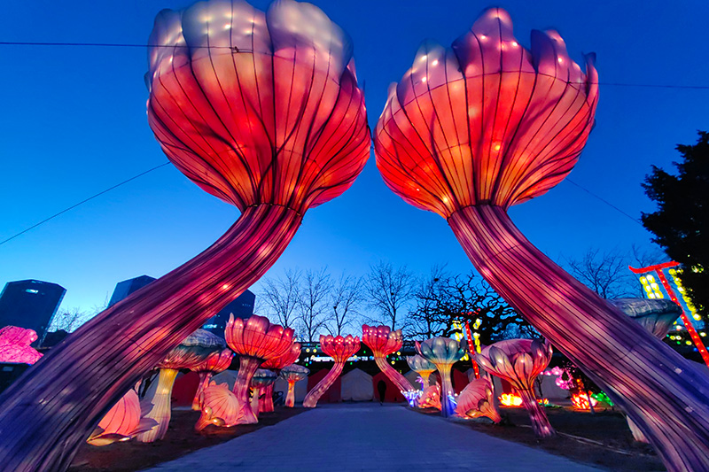 园区内布置六大主题灯组,从神话传说到梦幻雪景,移步换景,皆为拍照打卡胜地。东园市集汇聚京味小吃、国际美食与非遗文创,音乐大道“京蒙牵手”,27家内蒙优质文旅资源进京拜年,公主花园、波音广场更设有奖嘉年华活动,配合100%中奖的入园抽奖,品牌电视、电饭煲等好礼连环放送,惊喜不断。