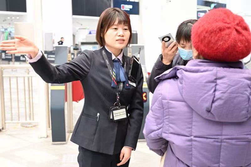 走到北站厅的巨瑞渊,远远就看到两位老年乘客拖着一个行李箱,在线路图前徘徊。她上前询问后得知,两位老人要前往北京南站,但不确定哪条换乘路线更方便。“大爷、大妈,别着急,我给您画个简单的线路图,保准一看就能明白。”巨瑞渊一边安抚老人情绪,一边主动接过行李箱,将两位老人带到站台等候列车,并掏出随身携带的向导卡,仔细标注换乘信息,反复叮嘱老人乘车过程中的注意事项,直到将他们安全送上列车,才安心继续巡站。