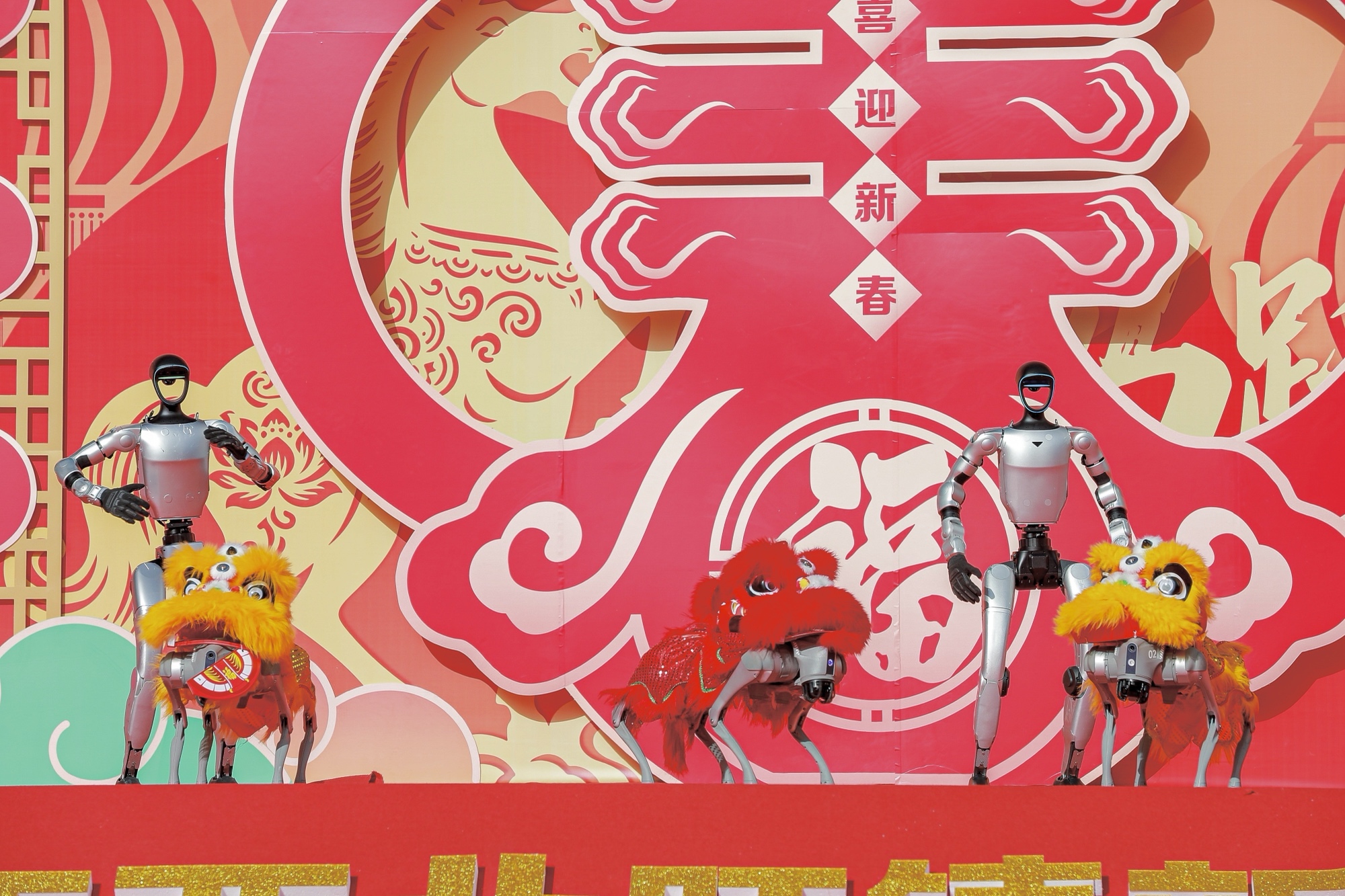 活动现场,传统与未来感交织。在创意秀《非你不AI》中,智能机器人化身“非遗传承官”,精准的机械律动与传统舞狮的灵动招式同台碰撞,引得观众惊叹。更具视觉冲击力的是踩街巡游队伍:威风凛凛的机甲悟空披挂红绸,与色彩鲜艳的舞龙、高跷、秧歌方阵并肩前行,形成一道移动的“科幻民俗”风景线。据了解,今年的巡游路线将首次拓展至中关村AI北纬社区和北京中关村学院,让锣鼓声与年味儿直接涌入了科创园区与校园。