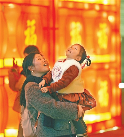 游客在山东临沂市郯城县郯国古城景区赏花灯。 张春雷摄(人民视觉)