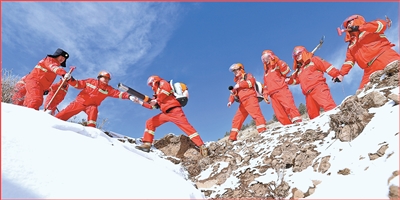 甘肃祁连山国家级自然保护区管护中心马蹄自然保护站的管护员在对管护范围内的森林草原防火、植被保护、野生动植物监测等情况进行仔细巡查。