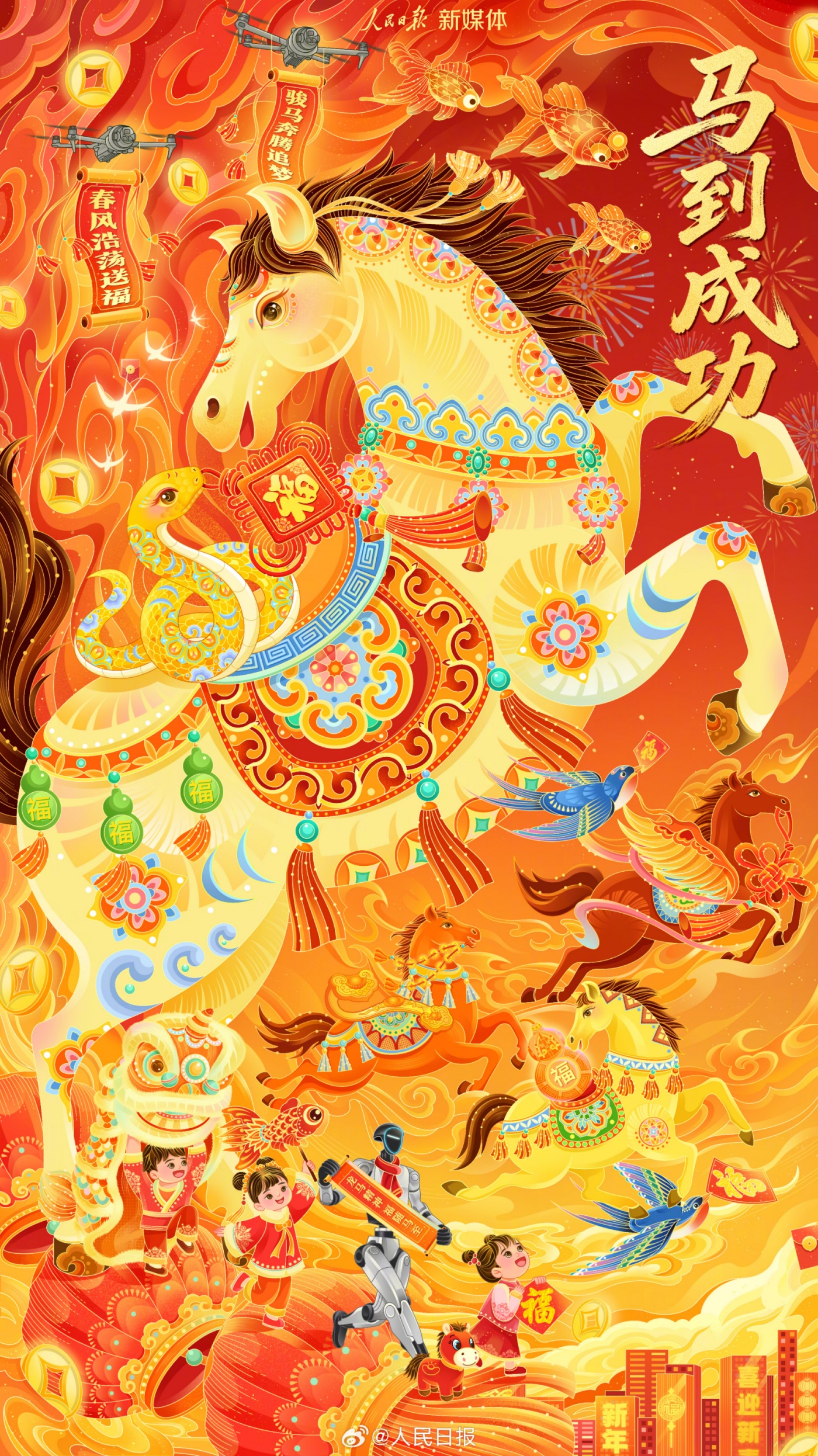 挥别灵性、智慧、有生命力的蛇,迎来刚健雄壮、自强不息的马。新的一年,祝你身体健康、工作顺利、阖家幸福、马年吉祥!
