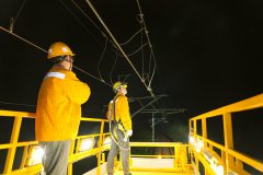 接触网工们正在轨道车作业平台上对接触网设备进行精细检查。韦杰摄为进一步夯实管内设备质量根基,保障春运期间南昆线触网设备供电安全,即日起,国铁南宁局南宁供电段组织干部职工,对南昆线田阳普速场至板其区段的348.4条公里的接触网设备开展集中维...