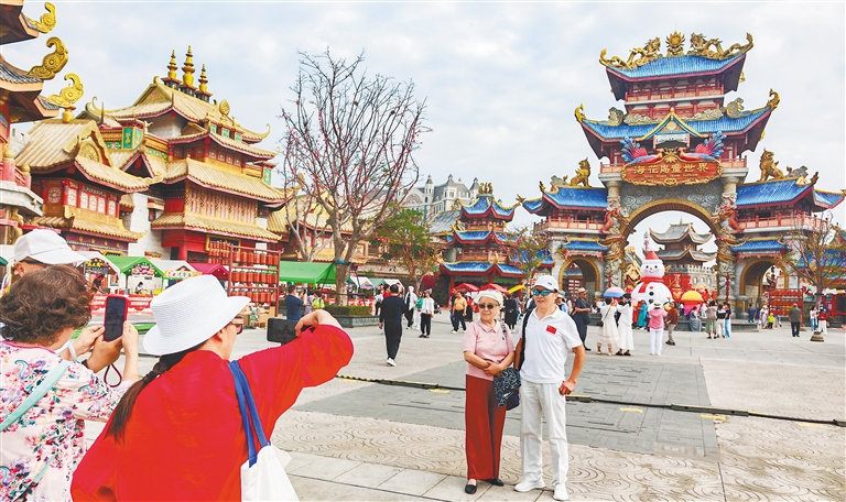 2月17日,大年初一,儋州市海花岛童世界张灯结彩,年味十足,众多市民游客前来游玩,开启新春欢乐之旅。图为游客在打卡拍照。海南日报全媒体记者 陈元才 摄