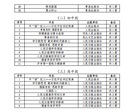 “跟着总书记读好书 燕赵书香伴成长”河北省青少年阅读活动推荐书目。