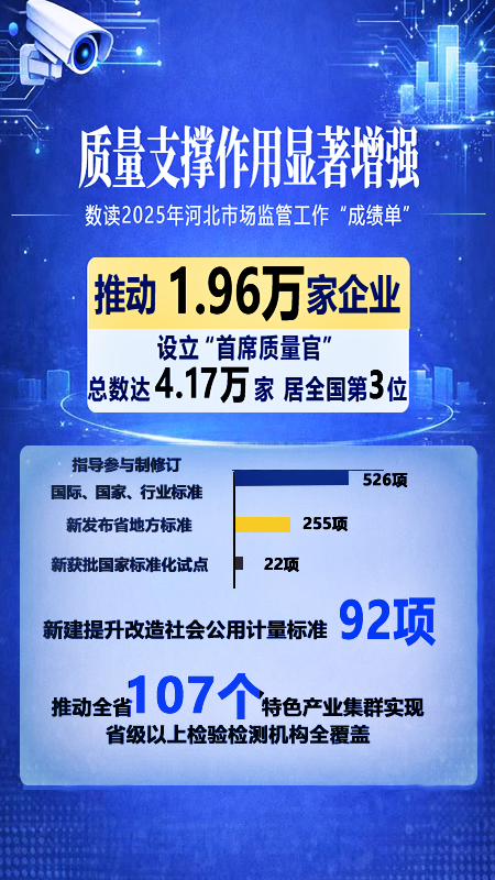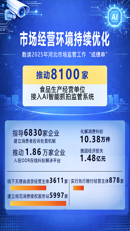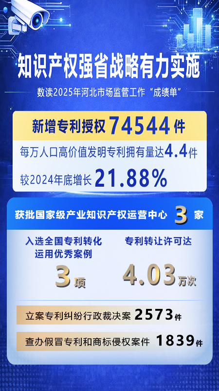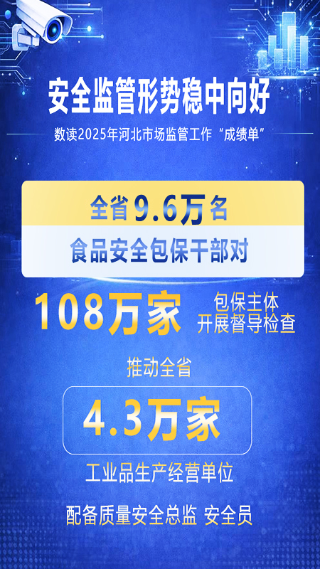 2025年是“十四五”收官之年。河北省市场监管部门强监管、保安全、提质量、促发展,推动各项工作取得显著成效——服务发展能力不断提升,市场经营环境持续优化,质量支撑作用显著增强,知识产权强省战略有力实施,安全监管形势稳中向好……接下来,让我们共同回顾这段奋斗征程中的关键成果。