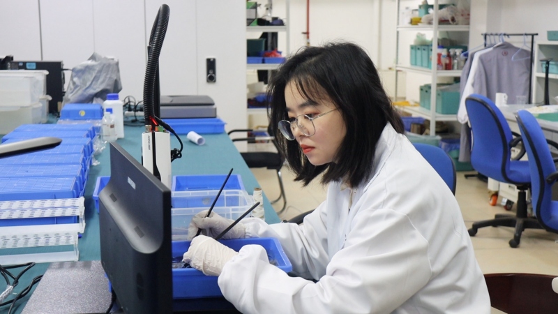 显微镜是修复师的“好助手”。他们用显微镜观察纤维,判断含水量、材质变化、微生物附着情况,在特制溶液中进行消毒,再用毫针调整形态。