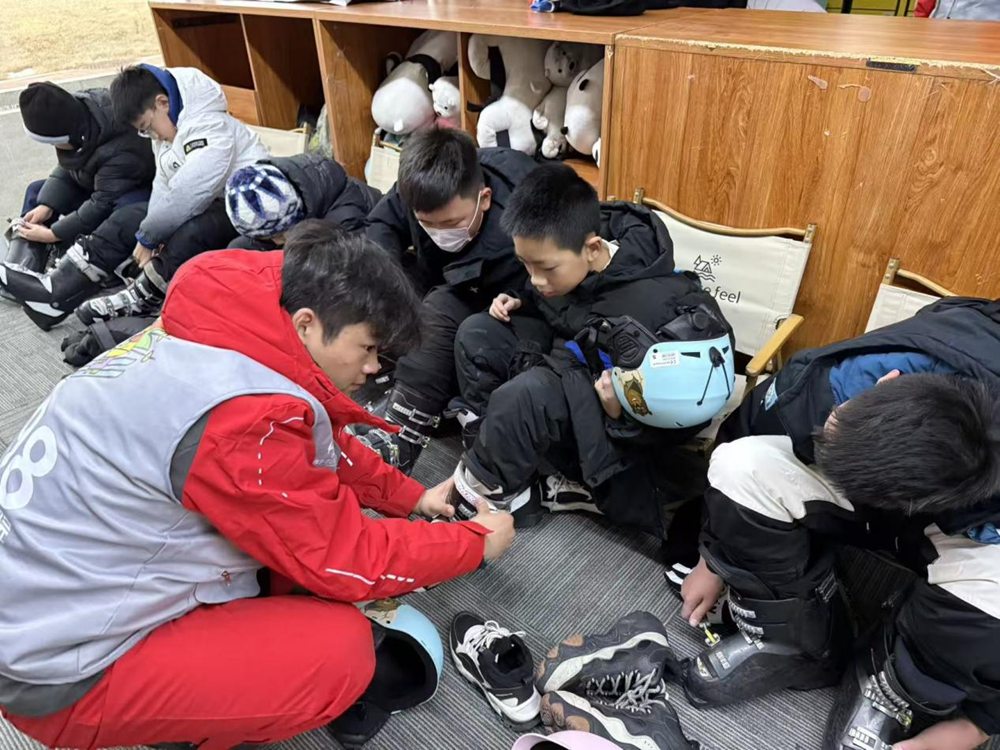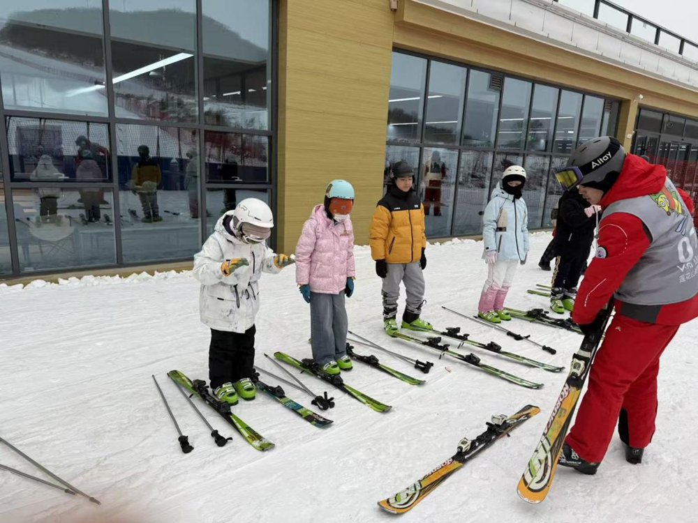 孩子们准备上滑雪课。长春市雷锋小学六年七班供图