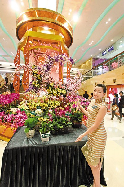 据香港《文汇报》报道,为迎接癸巳蛇年的来临,香港很多商场都已换上新春布置,并设有新年奖赏,有些更特别预备了设计别致的红包袋供免费 换领。今年,不少商场都以“年花”、“喜雀”、“彩蝶”等为主题布置,甚至中西文化融合,同时展现喜庆新春及浪漫情人节。