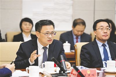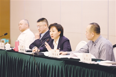 2月5日下午,自治区政协委员杜金宏(右二)就自治区优质绿色农畜产品品牌建设提出建议。记者 贾奕村摄