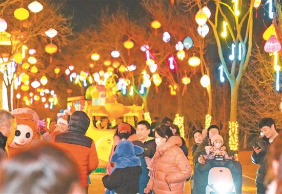 2月10日晚,“海宝承福·古郡兴章”银川老城第二届海宝福灯会在海宝公园启幕,灯会融合3D投影、全息光影、实景演艺、互动游园等形式,将非遗花灯、民俗表演、烟火市集、传统游戏融为一体,打造全龄段、沉浸式新春文旅体验。本届灯会将持续至农历正月十五,其间还将举办“腊八灯火·民俗韵舞”“立春启新·灯染春芽”“灯影闹元宵·福聚海宝”等主题活动。 记者 高晓刚 摄