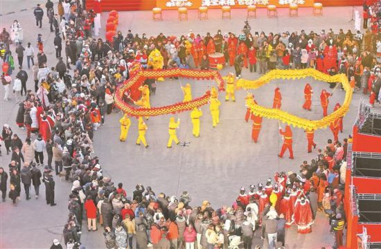 舞龙表演吸引众多游人的目光。记者 左鸣远 摄