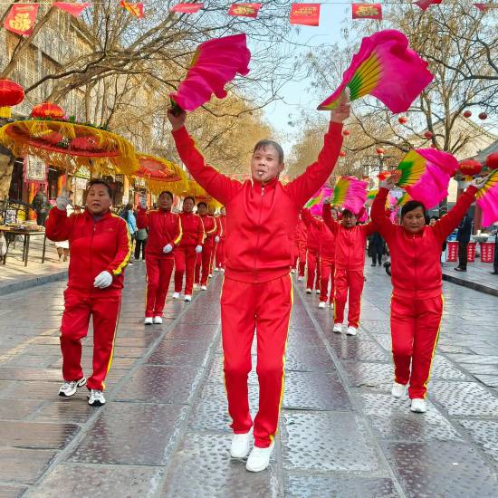 2月19日,农历正月初三,上午九时,潍坊青州古城里已是人潮涌动。云门山街道十字村锣鼓秧歌队的队员们踏着欢快的节奏扭起秧歌,引来游客围观拍照。舞龙队伍穿梭于街巷之间,彩龙翻飞,灵动炫目。而“老汉背媳”的民俗表演,则以诙谐幽默的动作引得众人笑声不断。