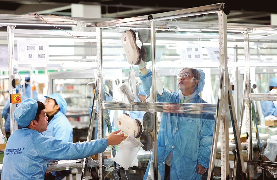 2月3日,山西洒拖机器人技术有限公司技术人员正在组装、检测机器人。该公司专注于研发、生产、销售擦窗和擦地机器人核心部件及整机,已经拥有120余项专利,产品远销50多个国家和地区。(刘勇摄)