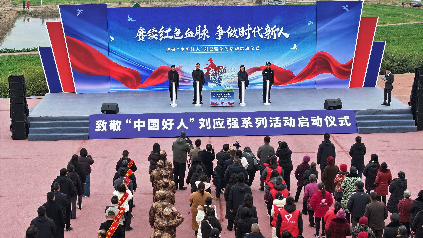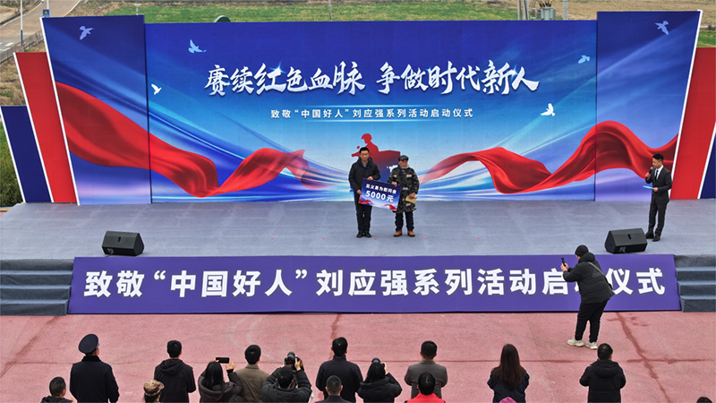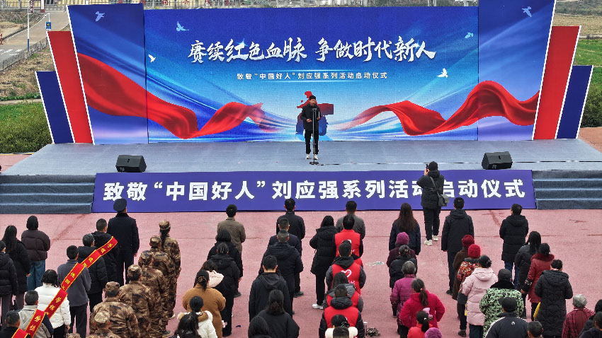 人民网成都1月31日电 (刘海天、张力、实习生周可)英雄故里,薪火相传。1月29日,以“赓续红色血脉 争做时代新人”为主题的致敬“中国好人”刘应强系列活动启动仪式,在四川中江县黄鹿镇鹿塘社区广场举行。退役军人、青年志愿者、学生等各界代表300余人齐聚现场,共同缅怀这位用生命践行见义勇为精神的时代英雄。