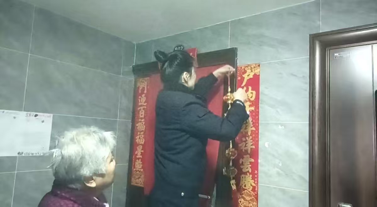 除夕下午,朱莉丽带着春联和灯笼,走进独居老人张婆婆的家中。搬凳子、贴春联、挂灯笼,她动作麻利又细心,原本冷清的屋子,瞬间被红彤彤的年味填满。张婆婆摸着平整的春联,看着门框两侧摇曳的灯笼,笑得合不拢嘴:“朱警官,你真是个好心人,过年都记挂着我这个孤老太婆,有你在,这个年过得太暖和了!”
