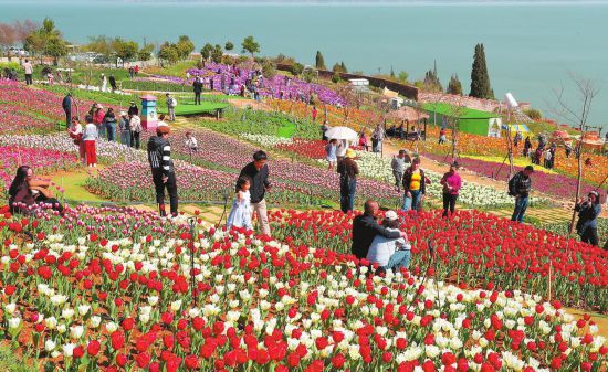 春节假期,位于昆明滇池畔的云海花田吸引了市民和游客前来打卡。 本报记者 杨峥 摄