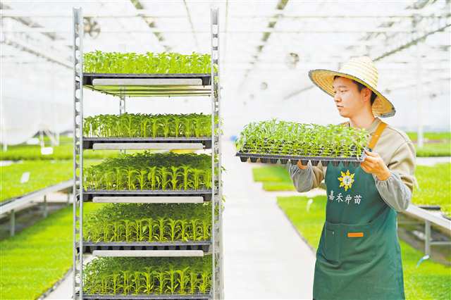 据介绍,该种苗工厂采用人工智能育苗技术,实现了从基质处理、高速播种到环境调控等方面的全流程自动化,年产优质种苗1.5亿株。(特约摄影 秦廷富/视觉重庆)