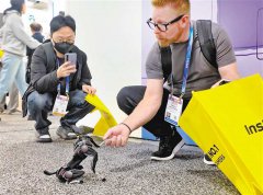 在二○二六年国际电子消费展上,观展者在和重庆造哮天Sirius智能机器狗互动。(受访者供图)今年1月,在美国举办的2026年国际电子消费展(以下简称CES 2026)上,大量中国企业参展,他们带来的科技产品深受海外市场喜爱,拿下不少订单。...