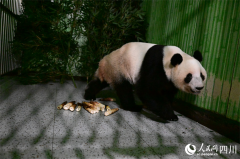大熊猫“蕾蕾”。李传有摄人民网成都1月28日电 (记者朱虹)北京时间1月28日1时,我国旅居日本东京上野动物园的大熊猫“晓晓”“蕾蕾”平安飞抵成都天府国际机场,并于6时顺利入住中国大熊猫保护研究中心雅安基地,接受隔离检疫。大熊猫“晓晓”“...