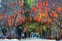 二月十四日,长治太行公园,市民从挂满红灯笼的树下走过。长治市街头巷尾处处张灯结彩,新春气息扑面而来。(梁栋 摄) ...