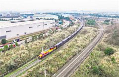 2月17日,重庆中欧班列农历新年首班列车从沙坪坝团结村站开出(无人机照片),驶向德国杜伊斯堡。马年新春伊始,这条钢铁大动脉便跑出“加速度”——春节期间班列保持稳定开行,近30列货运列车将接连发运,串联起亚欧大陆新春贸易的热潮。(通讯员 郭...