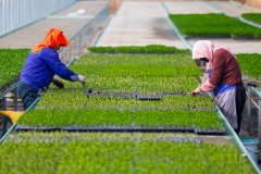 1月23日,位于银川市兴庆区掌政镇五渡桥村农业产业示范园的宁夏艾尚农业科技有限公司育苗大棚内,务工人员在查看幼苗长势。今年,该公司10栋大棚里同时培育了辣椒、西红柿、芹菜、西瓜等多个品种,育苗量达到250万株以上。目前,通过园区搭建的标准...