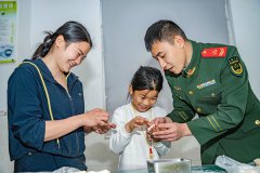 武警官兵与家属一同包饺子。 近日,武警广西总队玉林支队暖心组织春节坚守执勤战位的部分官兵家属来队探亲。军营里张灯结彩、年味十足,官兵与家属包饺子、话家常、吃年夜饭,处处洋溢着温馨团圆的氛围。此次活动让家属们真切感受到了军营的生活,理解军人...