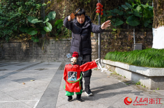 腊月十六下午四点,温州市苍南县城新区中心湖公园热闹起来。在公园一角的非遗表演区,第五批温州市非遗代表性传承人、苍南县新艺木偶剧团团长胡立基正忙着从戏箱里请出他的“演员们”——数十尊提线木偶。今晚,他的剧团要在这里演上一场。苍南提线木偶戏是门...